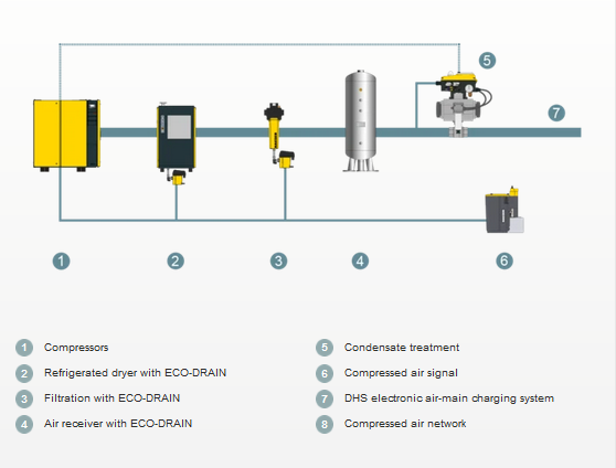 Compressed air treatment systems are designed for a certain rate of air flow which, when the system is operating at full load, pushes against the pressurized air in the air distribution network. However, should this resistance not be present, for example during periods of low load or downtime, it is possible that dryers and filters may be "overwhelmed" by the sudden surge in airflow that occurs when the system re-starts. DHS air-main charging systems reliably prevent this from occurring.