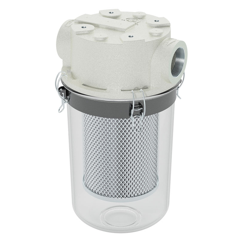 ST Series: Inlet vacuum pump filter with polycarbonate see-through bucket, 1" to 4"