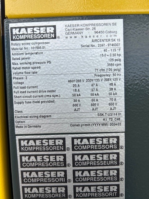 Our Used Kaeser air compressors are evaluated and fully serviced by our certified technicians. Since Kaeser compressors are "Built for a Lifetime" you will be guaranteed a quality compressor. The service friendly, rugged reliability, and guaranteed efficiency is certain to provide energy cost savings. Fully Rebuilt by our certified technicians.