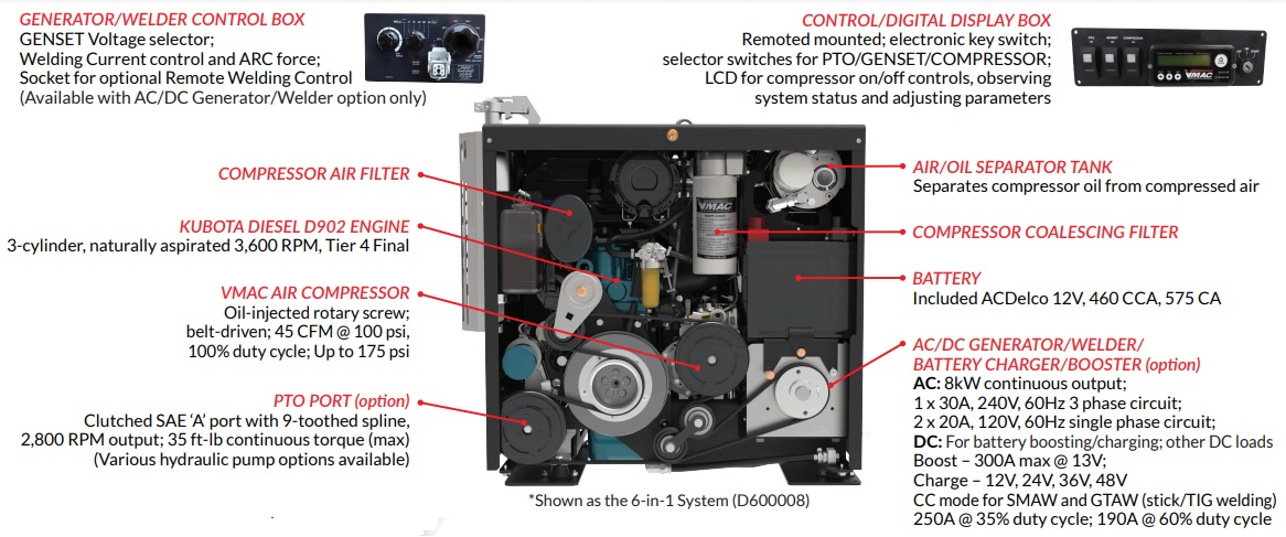 N/A Belt-driven, 100% duty cycle, VMAC® oil-injected rotary screw |
