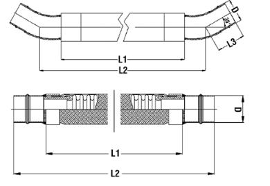 | ANKA055 /Asset/3-to-8-in-Flexible-Hose.PNG | N/A 200 Millimeter (mm) Diameter D and Stainless Steel Straight Connection Compressed Air Flexible Hose Length | Diameter D N/A 8-1/16 in200 mm | Dimension L1 N/A 55-1/8 in | Nominal Diameter N/A 8 in200 mm | Quote |