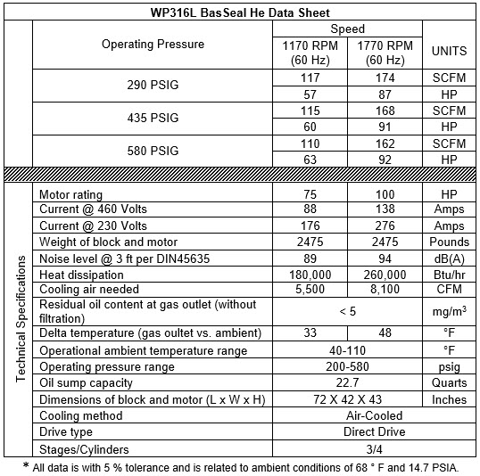 WP316L BasSeal (He-B) Full Specifications