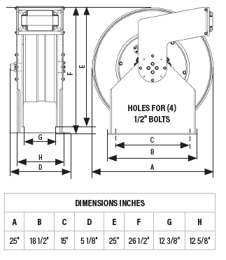 Heavy-duty applications where large hose diameters are required for increased flow. The EVX reels will accommodate up to 50' of 1" ID hose or 100' of 1/2" ID hose. Perfect for heavy-duty fleet, construction, mining and industrial applications.