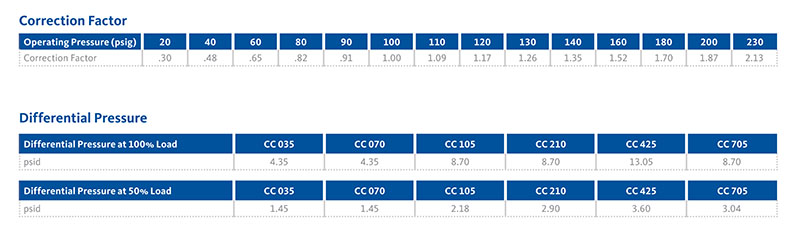 • Max. operating pressure: CC 035-425: 232 psig/CC 705: 160 psig
