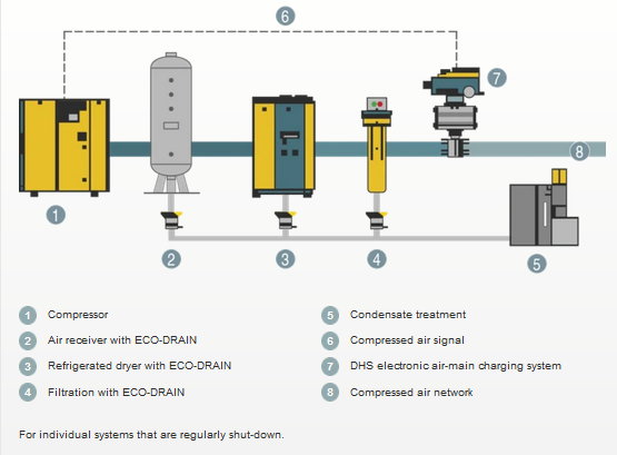 Compressed air treatment systems are designed for a certain rate of air flow which, when the system is operating at full load, pushes against the pressurized air in the air distribution network. However, should this resistance not be present, for example during periods of low load or downtime, it is possible that dryers and filters may be "overwhelmed" by the sudden surge in airflow that occurs when the system re-starts. DHS air-main charging systems reliably prevent this from occurring.