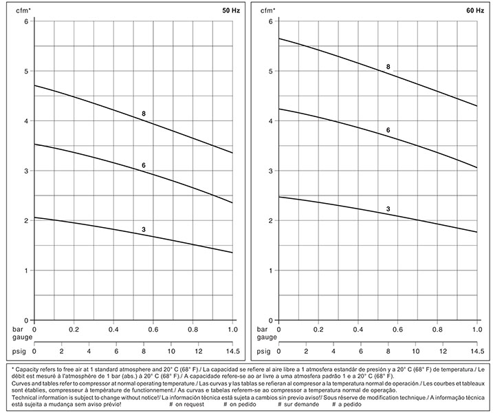 Motor Rating (1 ~) at 5.8 Excess Pressure (1 ~) at 50 Hz |
