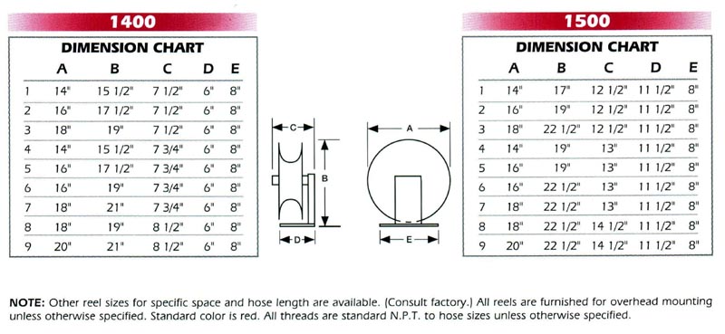Standard Duty 1400 Shop & Automative Reels for Ceiling, Wall or Floor Mount 300 PSI