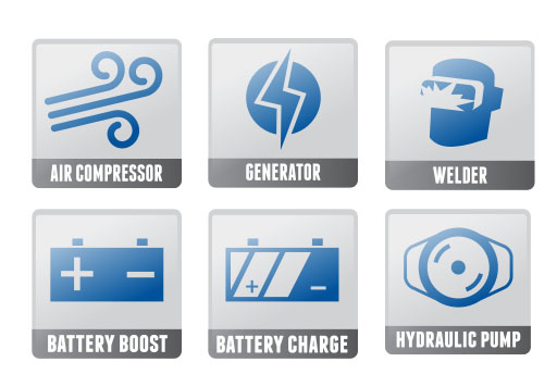 Vanair®'s Air N Arc® I-300 is the first system in the world to offer six forms of power in a single 48" unit with multi-functioning capabilities. The Air N Arc® I-300's unique system allows you to turn off the trucks engine while still supporting the electrical of the truck, so all the emergency lighting can still be used without fear of killing the truck battery. The Air N Arc® I-300 provides an integrated 40 CFM rotary screw compressor, 7 kW AC generator, 300 AMP welder, battery booster and battery charger, with the added power of a hydraulic pump...all driven by a single engine. The Air N Arc® I-300 offers enough power to run a crane and the technology to integrate with the crane control.