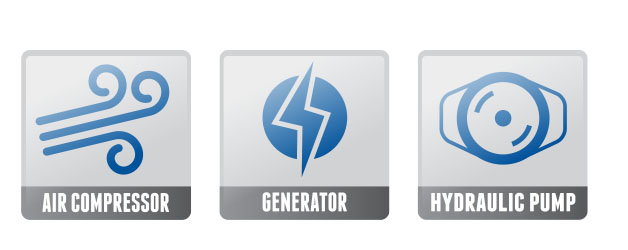 The Trifecta of Functionality Air Compressor, AC Generator, Hydraulic Output.