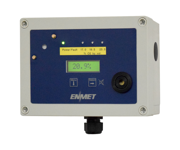 Enmet Single Point Hazardous Gas Monitor for Ambient Air is available for Carbon Monoxide (CO), Hydrogen Sulfide (H2S), or Oxygen (O2). The AM-5175 provides a digital display of gas concentration, audio/visual alarms, relay contacts, plus analog and digital outputs. The monitor incorporates electrochemical CO, H2S or O2 cells.