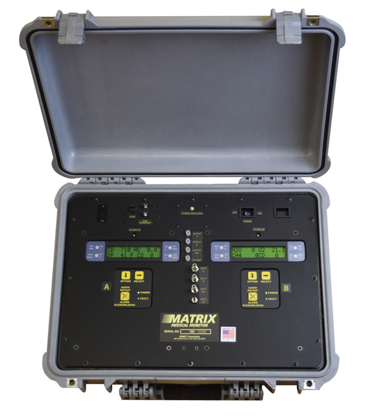 The MATRIX is a transportable instrument that is fully self-contained and able to operate on-site for 12 hours with no external support requirements. The real-time analysis data is displayed on the front LCD panels, which have integral alarm concentration indicators and loss of flow alarms.