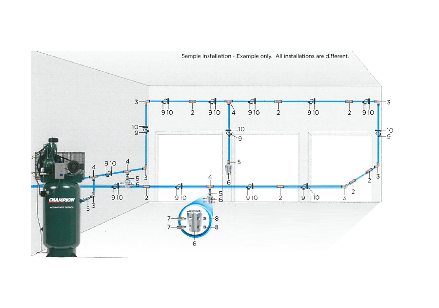 N/A C80191-08 - Universal Socket, 1/2 in. NPT Male - Quantity 6 C9000-14-BLUE-PK10 - 14 mm (I/2 in.) Tubing 8 ft - Quantity 3 - Sold In 10 Packs C90011-14-08 - Straight Male Connector 14mm x 1/2 in. Male - Quantity 4 C90040-14 - Straight Union Connector 14 mm - Quantity 21 C90040-14 - Straight Union Connector 14 mm - Quantity 21 - Sold In 10 Packs C90130-14 - Union Elbow 14 mm - Quantity 8 C90230-14 - Union Tee 14 mm - Quantity 4 C90601-MFD - Outlet Manifold 4 x 1/2 in. NPT Female - Quantity 3 C90610-08-NPT - O-Ring Sealed Plug, 1/2 in. NPT Male - Quantity 6 C90810-14-PK10 - Bracket, Hanging/Wall 14 mm - Quantity 4 - Sold In 10 Packs C90810-SP-PK10 - Wall Spacer 1 in. x 3 in. x 1/2 in. Thick - Quantity 4 - Sold In 10 Packs |