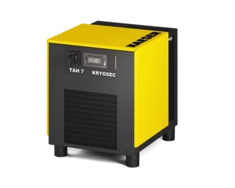 KRYOSEC compact refrigerated dryers (Dryers from this series contain the fluorinated greenhouse gas R-513A.) deliver outstanding performance with "Made in Germany" industrial quality and reliable moisture protection in ambient temperatures up to +122 ºF. Lower pressure losses are thanks to the stainless steel heat exchanger system while the easy maintenance design ensures economical operation. Thanks to their compact design, they're always a great fit directly where they're needed - under machine stages, work platforms, or even mounted on the wall (TAH series).