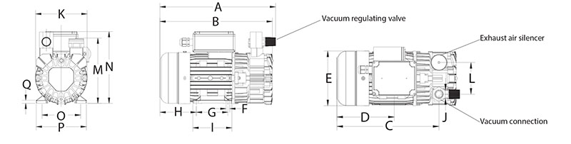 Republic offers the VRT series of dry-running rotary vane combination pumps and are ideally suited for oil free applications. They are single stage, air-cooled and direct driven for continuous operation. The design is one of the most reliable and simplest vacuum pumps available. These rugged pumps are simple to install and easy to service and maintain. The smaller pumps come with a motor integrated, while the larger pumps are available with or without motor. These pumps have a displacement ranging from 4.7 to 176 CFM (8 to 300 m3/hr) and a maximum vacuum of 150 torr.