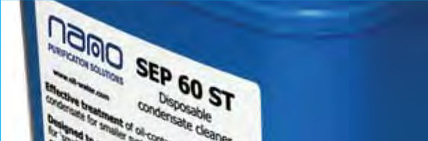 The nano Sepura range of oil water separators use a technologically advanced proprietary filtration media to separate oil from water in the condensate discharged from compressed air and gas systems. This non-carbon based and 100% recycled media actively absorbs oil while repelling water resulting in clean condensate that can be disposed of cleanly and inexpensively. Condensate from compressors, refrigeration dryers, coolers, filters or any other drain points are piped directly to the Sepura oil water separator. Here it passes directly into the primary filter which provides three critical functions: |