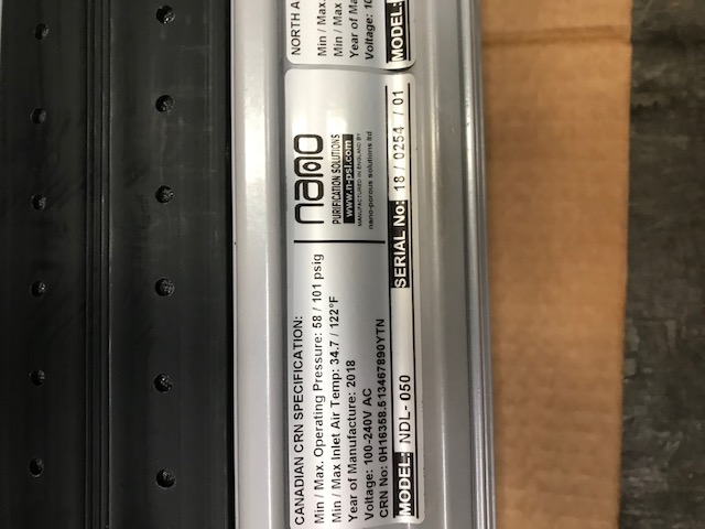Used Nano Desiccant Dryer. Only has 2 hours of operation on it. Equipped with Pre- and After-Filter