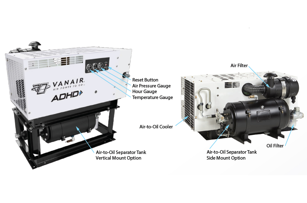 Powerful, and built for heavy-duty applications, Vanair's hydraulically driven ADHD provides you with the power of a 185 CFM and 150 PSI PTO shaft-driven system in a modular package. Designed to be versatile, the ADHD can be placed anywhere on the vehicle to meet your layout needs. Available in multiple configurations, the ADHD features a lifetime warranty on its air end.