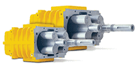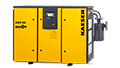 • Large Rotary Screw Compressors. Another positive displacement machine, these compressors use a rotary-type mechanism. This type of compressor provides a continuous sweeping motion, resulting in very little pulsation or flow surge. Common types include gas rotary screw compressors and oil-flooded or oil-injected compressors. In oil-flooded or oil-injected models, oil is injected into the compression cavity for sealing and to provide a cooling sink for the gas charge. The oil is cooled, filtered, and recycled in the process. They’re common in construction, refrigeration, mining, transportation, and other applications that require a high volume of compressed air.