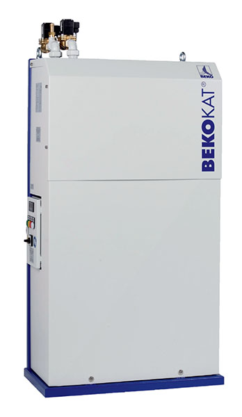 BEKOKAT Catalytic Conversions Systems sets new standards in compressed air processing here with pioneering catalytic converter technology. The unit fully converts hydrocarbons into carbon dioxide and water through total oxidation. The method provides constantly oil-free compressed air with a maximum residual oil content of a barely measurable 0.001 milligram per cubic meter.