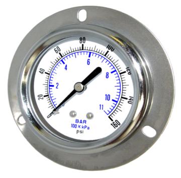 N/A Front Flanged Panel Mount Dry Utility Pressure Gauge N/A 2 in N/A 1/4 in National Pipe Thread (NPT) N/A 0 to 160 psi $45.50 Add To Cart