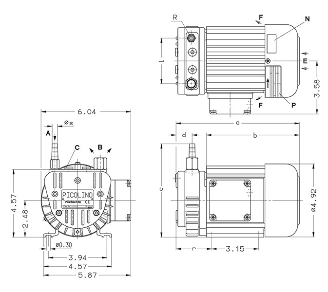 | VTE 3 /Asset/VTE-Vacuum-Pumps.jpg | N/A Dry Vane Vacuum Pump | Dimension a N/A 8.23 in | Dimension b N/A 6.26 in | Dimension c N/A 5.94 in | Dimension d N/A 0.94 in | Air Flow at 50 Hz N/A 2.1 ft³/min | Air Flow at 60 Hz N/A 2.5 ft³/min | Quote |