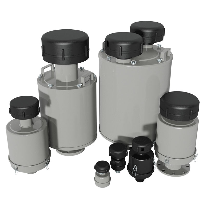 Intake air is drawn through the angled louver plates which direct the air to turn the rotor. The centrifugal force separates the contaminants from the airstream, throwing them to the outer perimeter of the cover, expelling them through the discharge port. Cleaner air is drawn to the lower chamber and filtered by a 99% efficient pleated element.