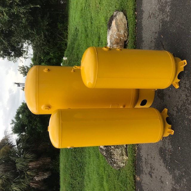 Compressed Air System's Receiver Tank Kits includes 1 fully painted exterior tank 1 safety relief valve, 1 2" gauge and a 1 condensate timer drain. Our standard paint color is yellow. Optional colors are available. The safety relief valve and gauge are sized to the tanks maximum psi. The timer drain voltage is 115V with optional drain times from 0.5 to 10 seconds. Intervals can be set from 30 seconds to 45 minutes.