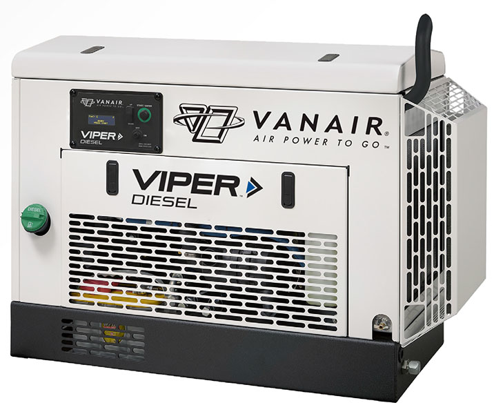 With the Vanair® Viper™ diesel you get all the air power you need to get the job done at half the cost of tow behinds or cross mounts. Engineered with smart technology to provide automatic variable speed control for fuel savings, the Viper™ is perfect for running 90 Lb. jackhammers, operating up to 4" piercing tools and blowing out irrigation systems. Designed with a simple push start control panel, the Viper™ is compact enough to fit into even the smallest pickup truck bed.